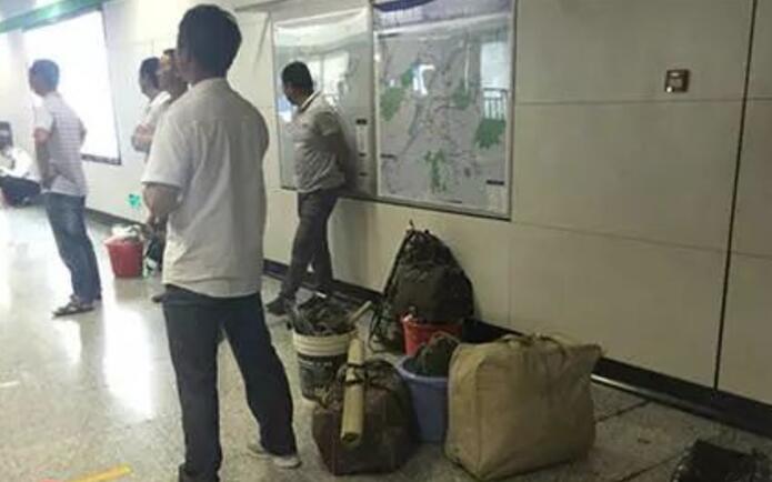 刚上车就对着坐在座位上的几位农民工指指点点,