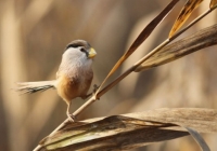 震旦鸦雀的英文名Reed Parrotbill,意思就是生活在芦苇里的嘴巴像鹦鹉一样的鸟。冬天大部分时间,它吃附着在芦苇杆上的介壳虫。夏天,它吃蛾子的幼虫,它会咬碎芦苇杆,把虫子取出来喂养后代。震旦鸦雀的巢像杯子,它把芦苇撕成条,然后编织在芦苇杆上。震旦鸦雀的翅膀小,不能做远距离的飞行,它基本不会到陆地上,喜欢用脚爪抓住芦苇杆,脚的结构适合它生活在芦苇里。