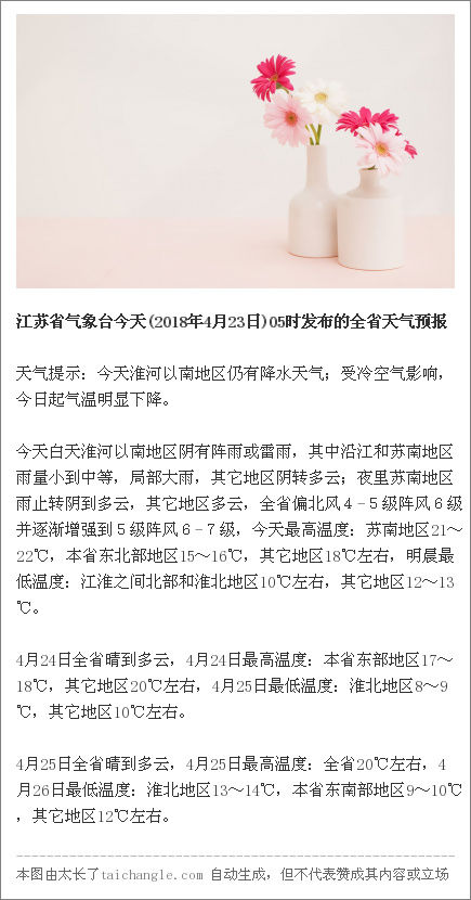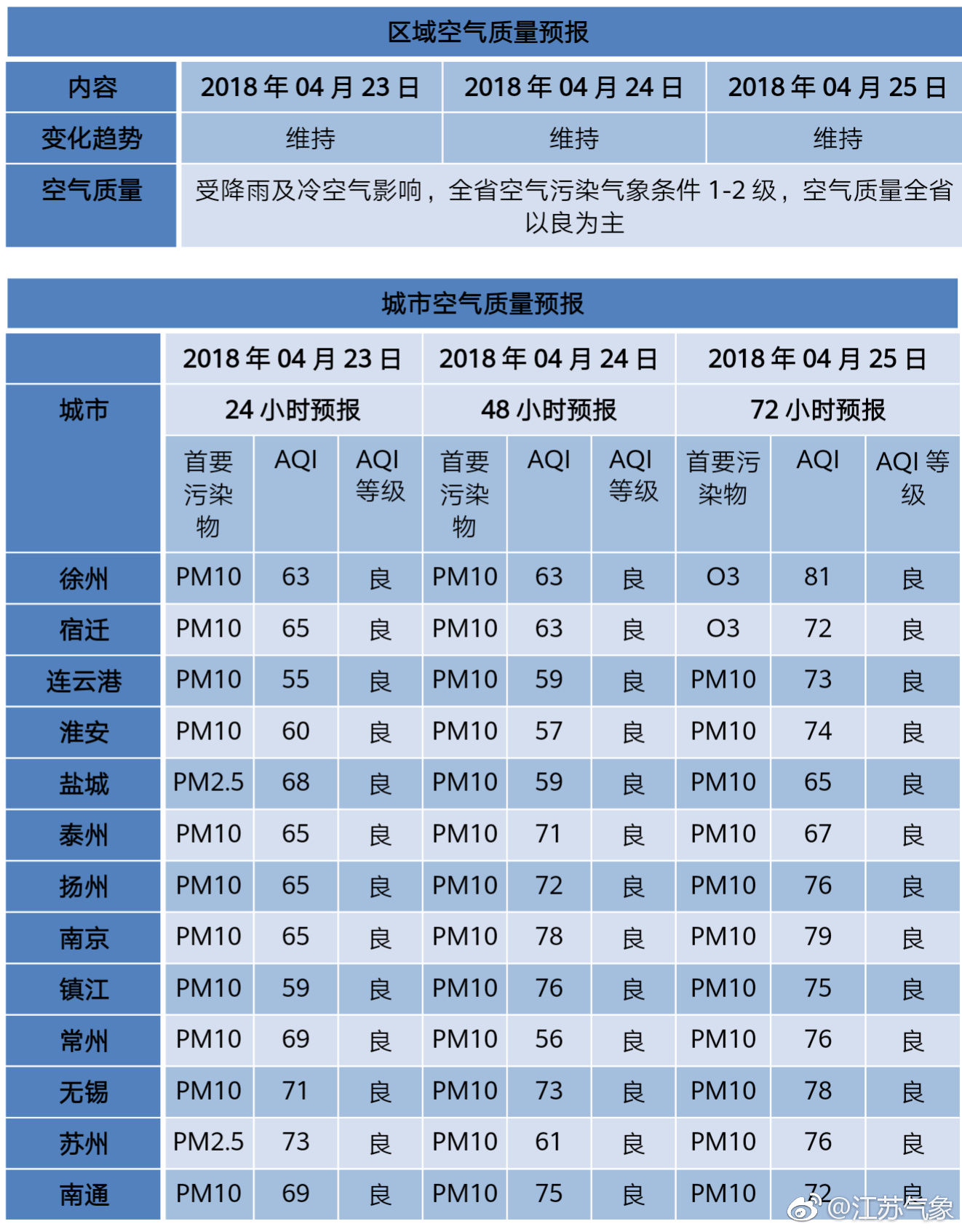 南京市气象台今天(2018年4月23日)05时发布的全市天气预报