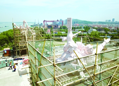 南京长江大桥桥头堡工农兵雕塑粉刷一新。