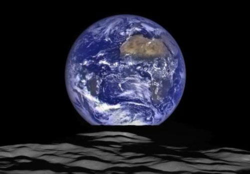 美国宇航局发布的月球勘测轨道飞行器近期拍摄的图片,从宇宙飞船角度看,地球似乎正在从月球水平线上“升起”。