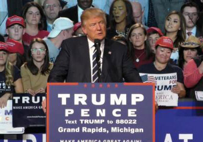 特朗普28日在密歇根州的华盛顿镇发表讲话。(图源:《国会山报》)