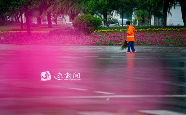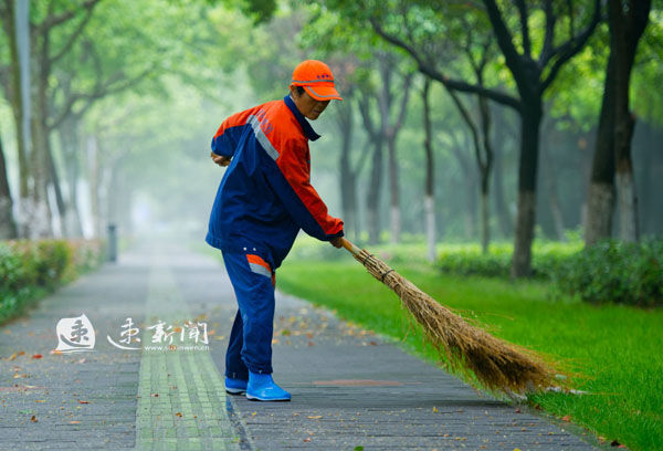 今天是“五一”小长假最后一天,宿迁也将一场大雨让地上飘了许多落叶。清晨6时许,当人们还在睡梦中,道路上已经传来了环卫工人扫地的“沙沙”声。