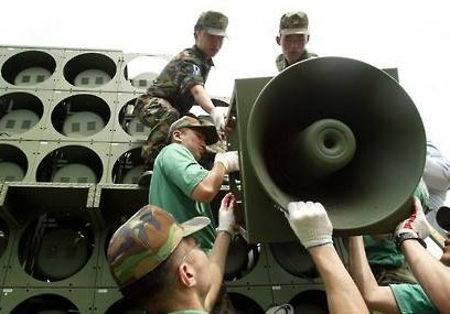 据报道,韩军将从当天下午2时起拆除对朝扩音喊话设备。韩军共有10余台移动式扩音设备、30余台固定式对朝扩音喊话设备。军方已将移动式扩音设撤回,并着手拆除固定式对朝扩音喊话设备。