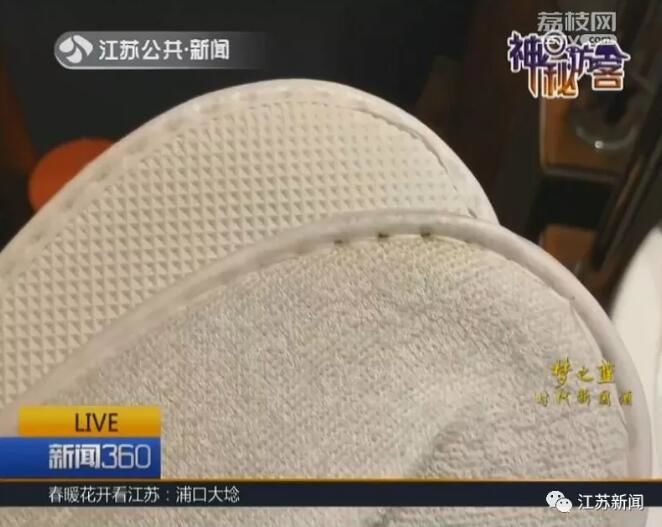 房间里的一次性拖鞋,闻上去有一股霉味,摸上去湿乎乎的。拖鞋的这个地方已经发霉了。