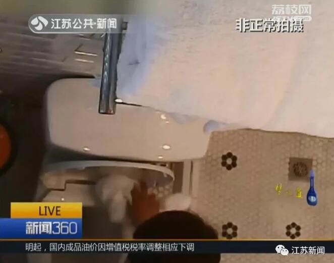 这名工作人员将悬挂着的一条毛巾拿了下来,放在抽水马桶的水箱上。随后,更让人意外的是,工作人员并没有使用专门的清洁布,而是用客房的毛巾将马桶内外擦拭干净。