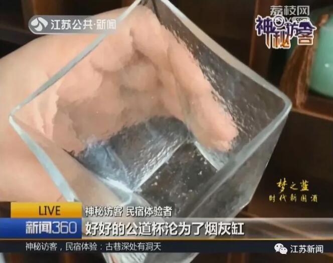 房里有很多茶具,神秘访客一看玻璃的公道杯,里面是烟灰,好好的公道杯沦为了烟灰缸。