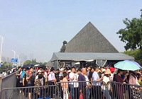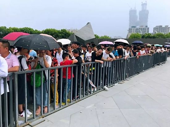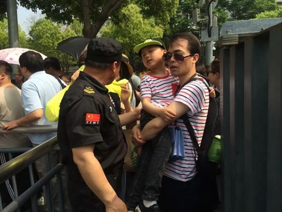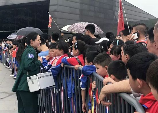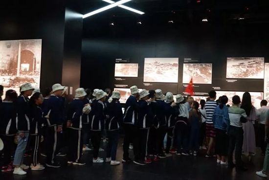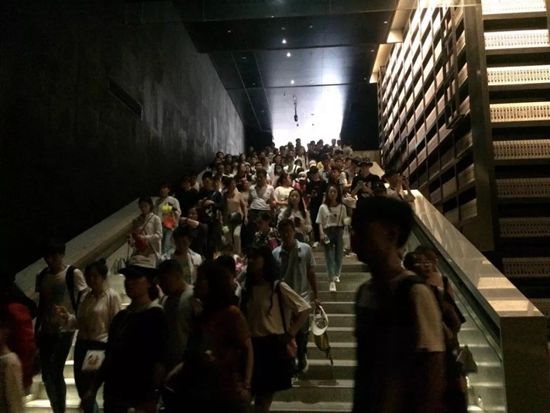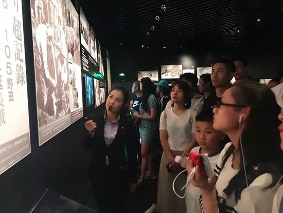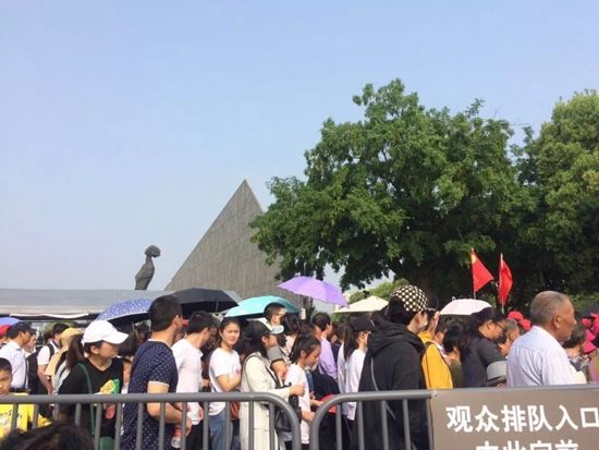 这位1968年出生的汉子在人群中维持秩序,几乎一刻不停地向观众解释,不停做着手势。熊师傅说,残疾人、老人、小孩、孕妇等人群,我们要给大家行个方便。身体健康的中青年观众应该都能理解。他额头沁满汗珠,却腼腆地说,“我自己不辛苦。大家提着大包小包,大老远的赶来,了解这段历史,我为大家服务,是应该的。”