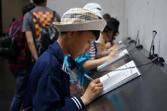“五一”小长假第二天,小编在巡馆时对这个镜头特别难忘:一位妈妈在留言台前帮女儿改错别字。