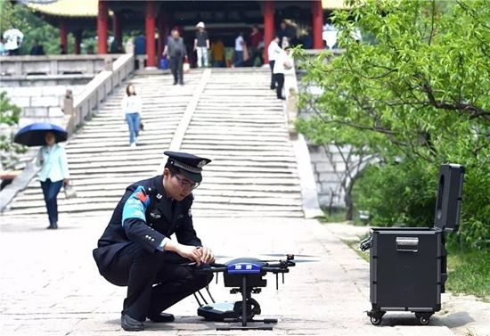 为适应瘦西湖景区特殊地理环境,扬州旅游警察专门配备警用无人机开展“空中巡逻”。盘旋在景区上空的无人机,如“鹰眼”一般扫视陆地、水面、高空,其拍摄到的影像可迅速传送到指挥中心,为地面决策提供第一手资料。
