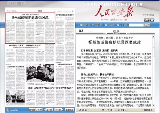 2018年以来,扬州旅游警察积极探索、不断创新,逐步改变了传统的“人海战术”勤务模式,充分借力“大数据”、“黑科技”、“金点子”,以信息数据的“大整合、高共享、深应用”为核心,通过视频监控升级、人脸识别、LBS定位、移动警务、物联网、无人机、实时翻译机等科技手段和智能装备,最大化地为游客提供优质服务,在服务游客、护航景区方面取得了不错的成效,得到了中央电视台、人民公安报、新华日报等各大主流的媒体的报道肯定。