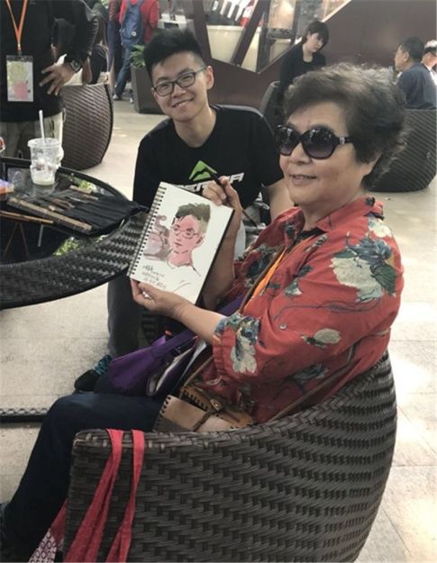 台湾宜兰社区大学兼任讲师王锦秀在茶座休息时,替一路随行的江苏摄影师孙浩然画了幅小像。