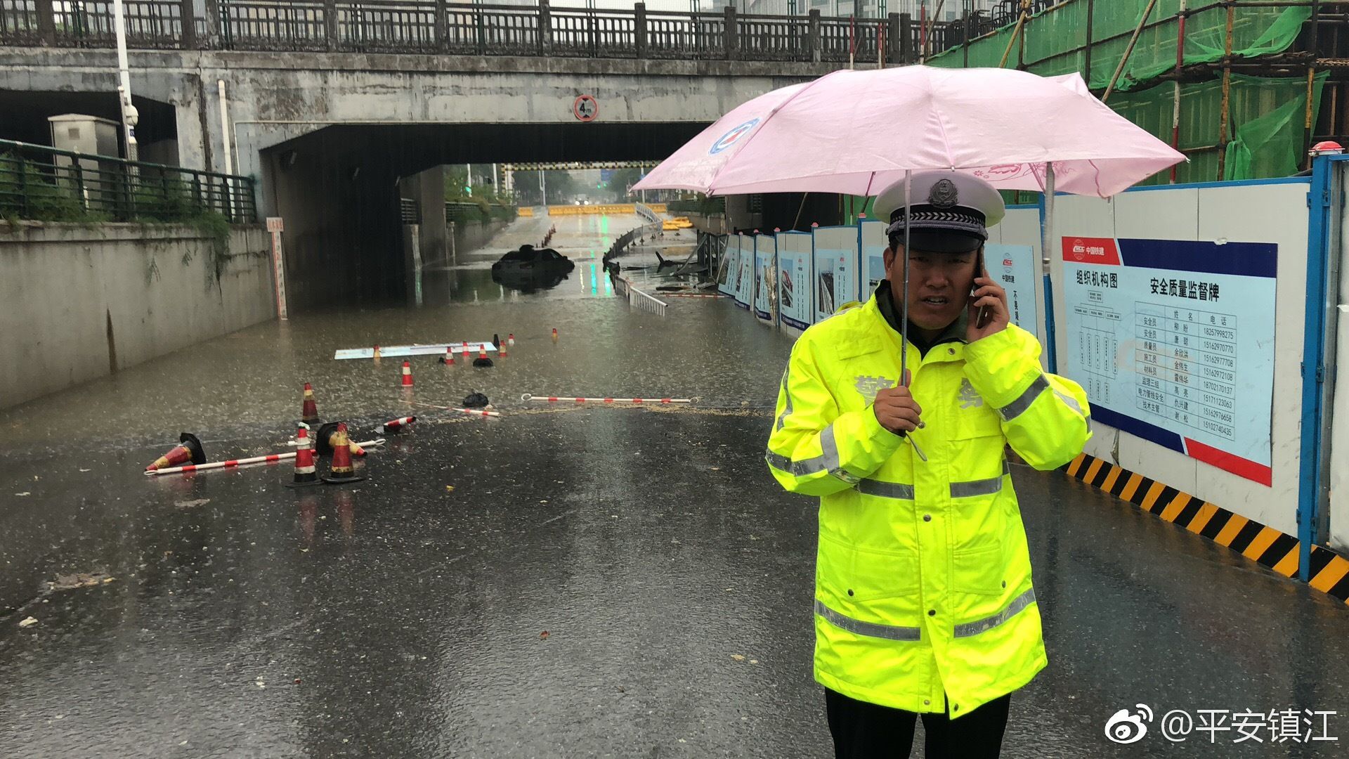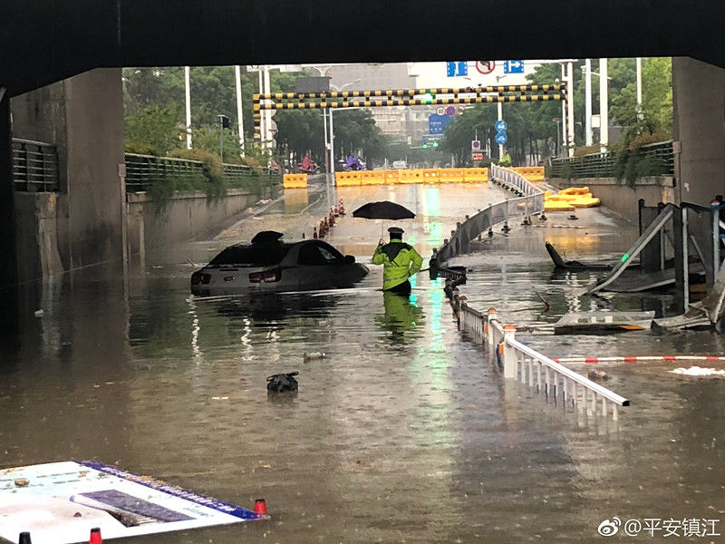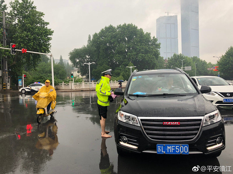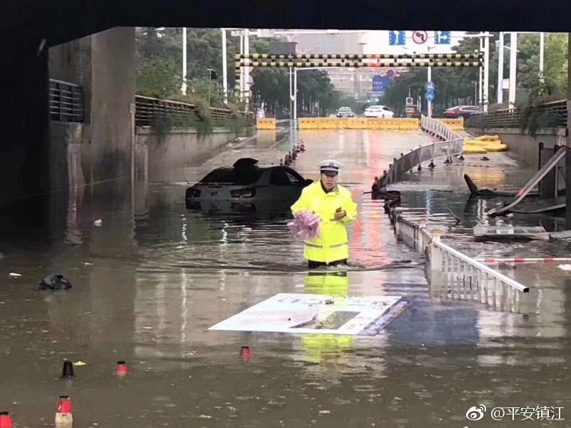一夜的暴雨导致镇江市区珍珠桥涵洞积水一米多深,一辆白色轿车淹没水中,今早六点多,镇江交警京口大队值班民警张久召 巡逻至此,脱下鞋子,卷起裤子,趟着齐腰深的积水查看涉水车辆有无人员被困,最终确认车内无人,张久召立即汇报险情,并采取临时管制措施,赤脚引导周边车辆绕行。