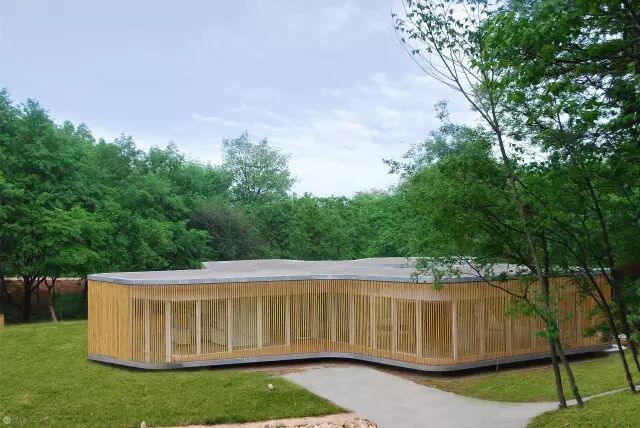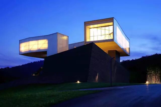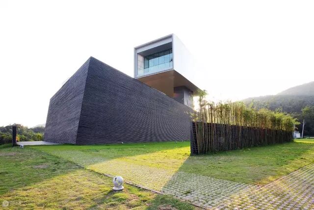 美术馆由一些平行的透视空间组成,花园墙由黑色混凝土竹模板制成,这样馆身就像一个轻质量体悬浮在花园墙之上。