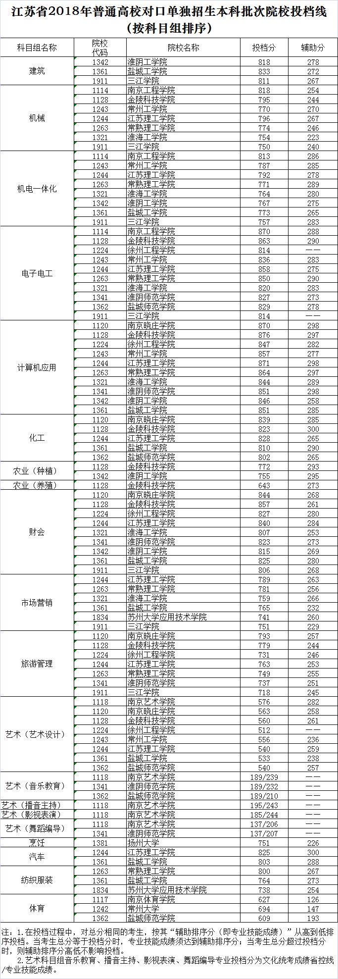 江苏省2018年普通高校对口单独招生本科批次录取工作开始,省教育考试院现公布本科批次院校投档线。