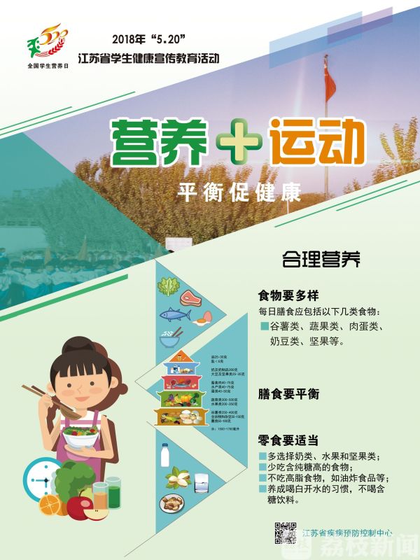 5月20号是我国第29个“中国学生营养日”。5月18号,省卫计委、省预防医学会以及省疾控中心在苏州市平江实验学校举行“中国学生营养日”宣传启动仪式。去年的监测数据显示,我省中小学生超重肥胖率已超过30%。 我国学生的营养状况不容乐观。虽然膳食热量供给基本达标,但蛋白质供给量偏低,优质蛋白比例小,钙、锌、铁、维生素A等营养素明显不足。