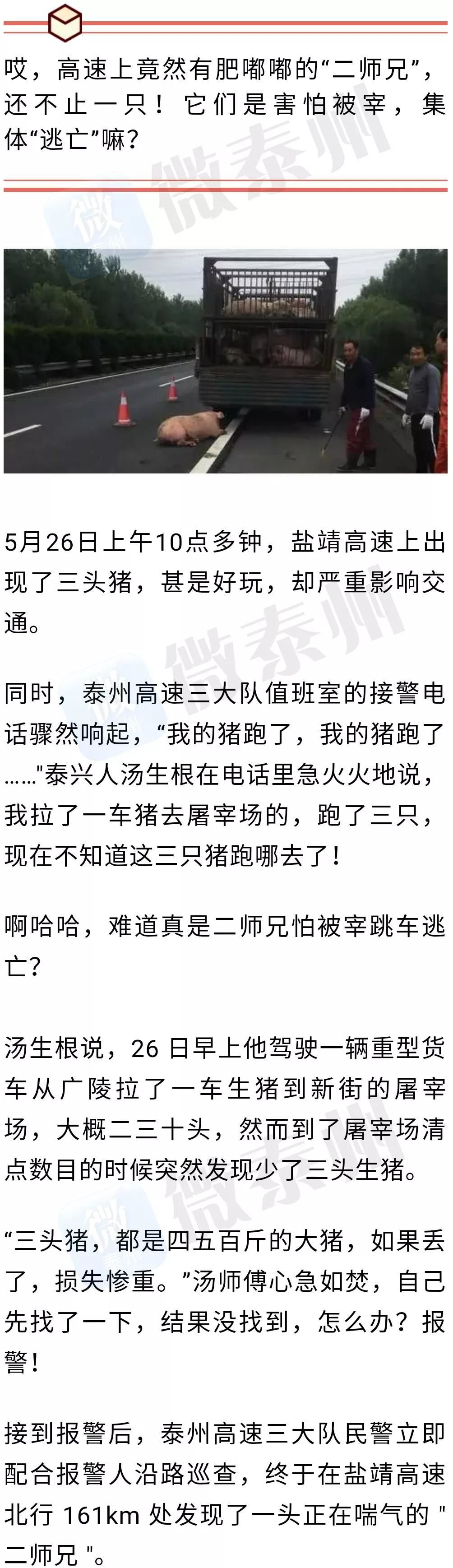 去屠宰场的路上,3只“二师兄”盐靖高速上跳车逃亡,结果……
