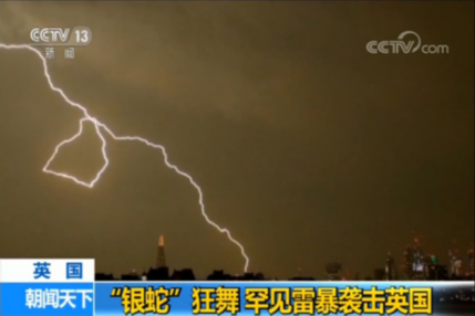 当地时间26日晚,英国英格兰南部以及威尔士等部分地区遭遇罕见雷暴天气。据路透社报道,当晚英国的夜空中出现了超过6万次闪电。