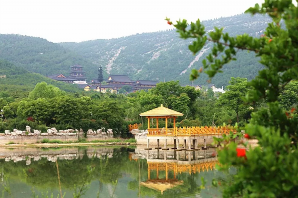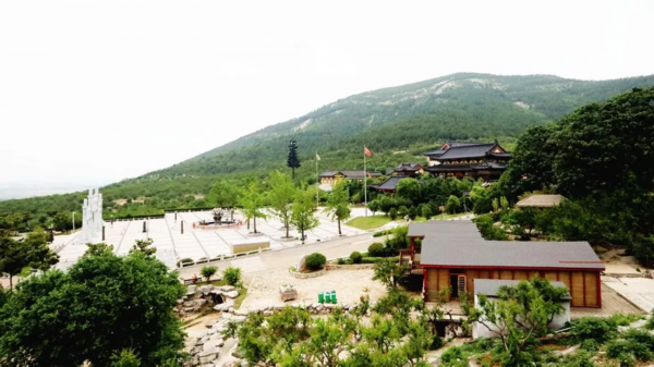 站在高处,俯瞰茱萸寺与山景融为一体