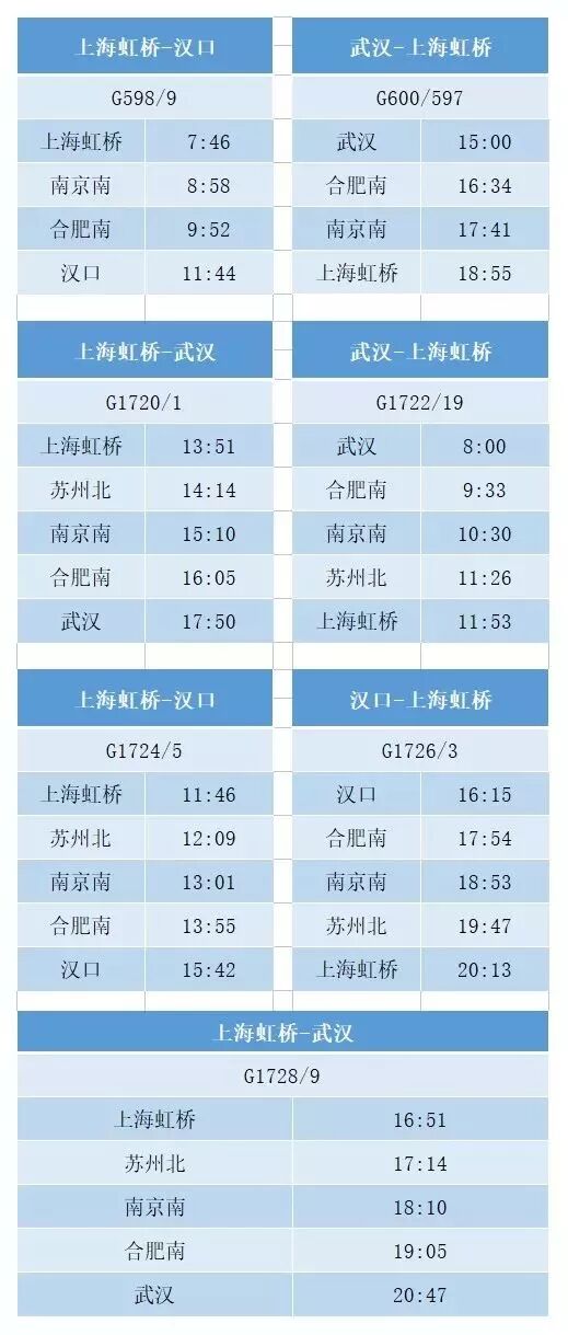 上海虹桥~武汉D3002/3 D3004/1次1对延伸运行区段为上海虹桥~襄阳东,在武汉枢纽改经由汉口站。