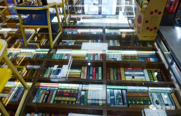走进清江浦书房,就仿佛走进了一个被书包围的世界,让人无比安心。脚下的地板和阶梯不是普通的木质地板或是瓷砖地面,而是由高强度玻璃覆盖住的各色书壳,漫步其上,仿佛从此走上由书籍铺就的未来之路。