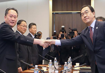 当天参加会谈的韩方代表团由韩国统一部长官赵明均任首席代表,朝方代表团则由朝鲜祖国和平统一委员会委员长李善权任团长。