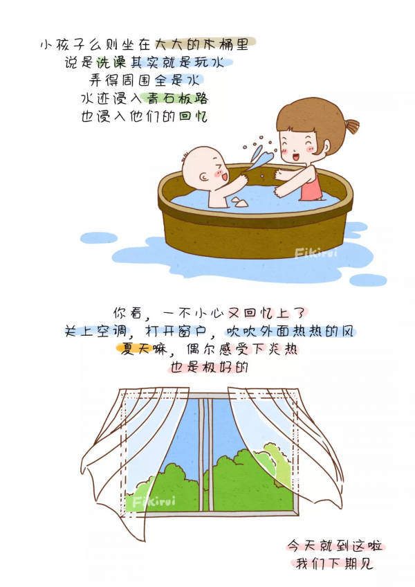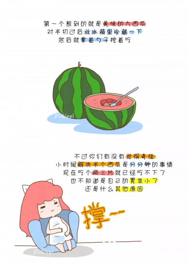 边啃西瓜边想到小时候。那个年代没有空调,但是并没有感觉那么热。白天带着草帽,顶着大太阳在外面跑来跑去,流了好多汗,回家用毛巾擦把脸,摇着蒲扇再啃上一片西瓜,就觉得凉爽得不得了。