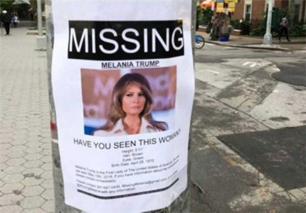 梅拉尼娅自上月10日最后一次亮相安德鲁斯空军基地后,至今已有22天没有现身了,尽管白宫称她14日接受了肾脏手术,目前正处于休养期,但媒体和民众对于她的行踪则有着各自的猜测。甚至在曼哈顿东村附近,近日出现了十余张贴有梅拉尼娅照片的寻人启事,上书“MISSING(失踪)”字样,附有她身高、发色、瞳色和出生日期等信息,还称“如果你知道她在哪儿,请尽快联系我们。”