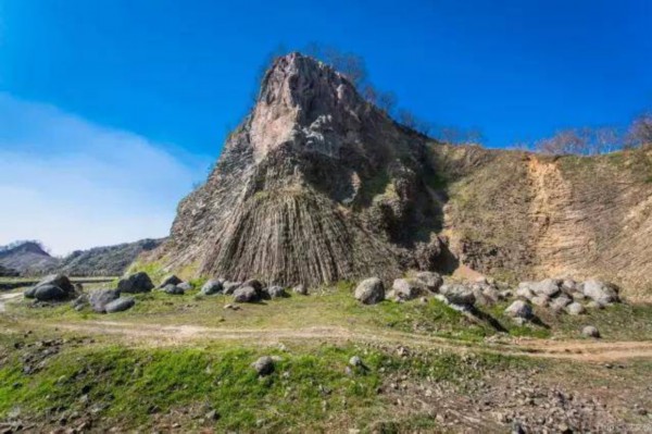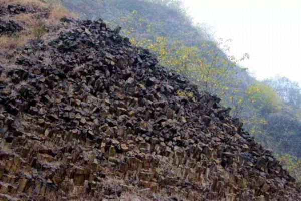 一千万年以前火山爆发时玄武岩喷到地面冷却后产生的六棱形、五棱形等不同形态的“柱状节理”,它比闻名于世的美国黄石公园石柱林还要高大、壮观、雄伟。