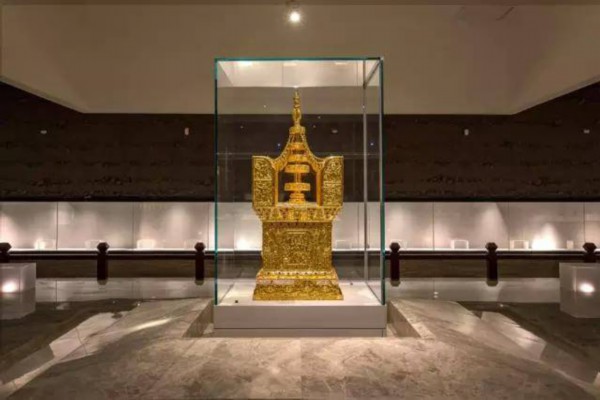 这里陈列着出土的文物、铁函及国宝级文物七宝鎏金阿育王塔,这可是目前中国境内出土的体积最大、工艺最复杂、制作最精美的阿育王塔,堪称“塔王”。