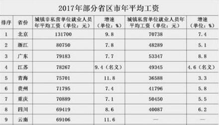 据不完全统计,截至6月1日,全国至少已经有20个省份公布了2017年城镇非私营单位、私营单位就业人员年平均工资水平,目前,北京分别以131700元和70738元领跑全国。