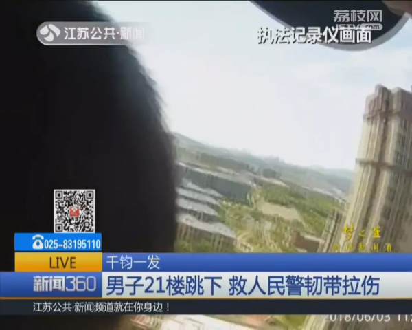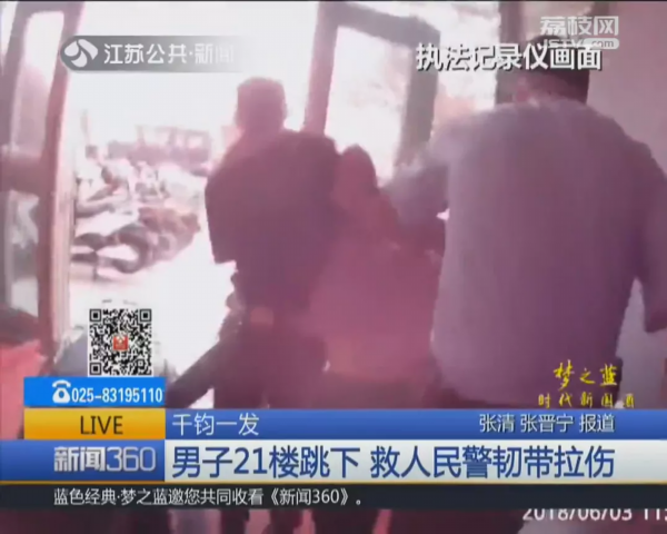 6月3日上午,南京栖霞区尧化门派出所民警在处置一桩家庭纠纷时,突然遭遇当事人刘某爬上窗户,纵身跳下!千钧一发之际,民警一把拽住了刘某。