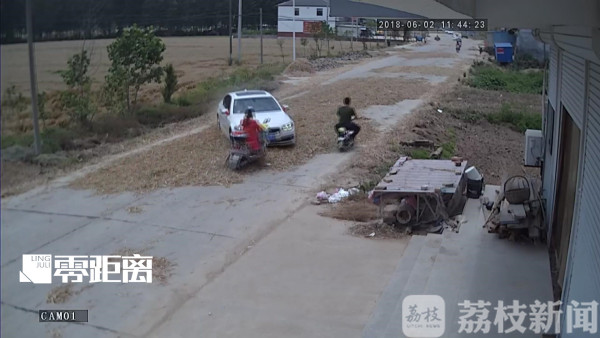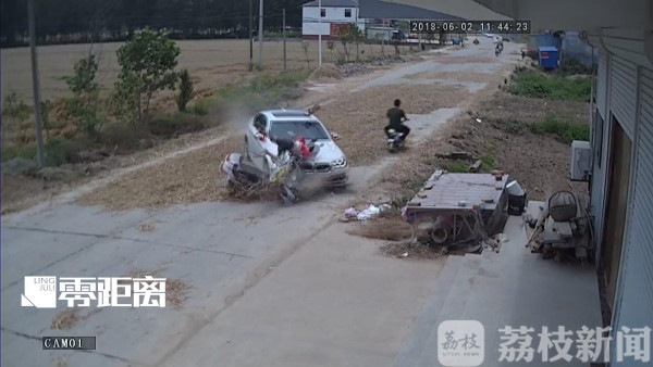 事故发生在睢宁县X307县道凌李线11KM处附近,村民杜女士骑电动自行车由西往东行驶,此时在画面上方有两辆白色宝马轿车迎面驶来,当后面一辆宝马轿车行驶至一堆麦草上时,车辆突然失控,杜女士被当场撞飞。