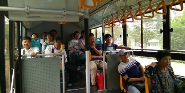 车上的老人们忙着关闭窗户,让空调冷气迅速制冷。