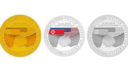 5月下旬,在朝美双方尚未敲定会谈细节之际,美国白宫通讯局也曾抢先发行250枚“金特会纪念币”。这款纪念币上面有特朗普和金正恩彼此面对面的金色浮雕,背景是拼接的两国国旗。纪念币上以“最高领导人”称呼金正恩。这款纪念币原本定价24.95美元。但随着特朗普5月24日突然宣布取消与金正恩的峰会,这款纪念币在白宫纪念品商店的售价应声下跌至19.95美元。
