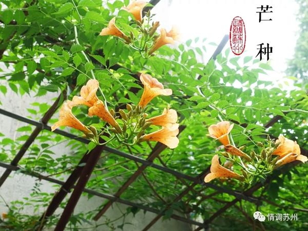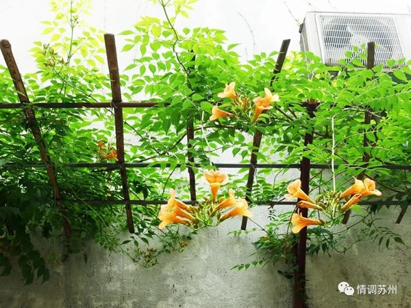 拙政园中“绿荷红菡萏,卷舒开合任天真”的景象还需等上些时日。凌霄不怕晒,日头越大开得越盛,“借高枝炫耀自己”的形象深入人心,小巷里种在凌霄底下的美人蕉不开花,老阿爹都要斜着眼睛瞪瞪枝繁叶茂的凌霄:都怪你,营养都被你吸走了!