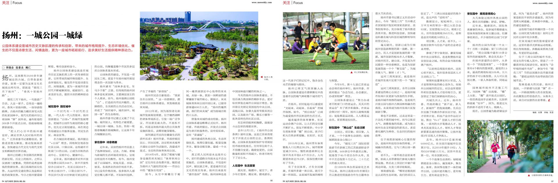 昨天(6月5日)是世界环境日。人民日报《民生周刊》2018年6月4日第11期,刊登了《扬州:一城公园一城绿》的报道。