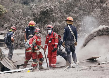 危地马拉首都危地马拉城附近的富埃戈火山3日喷发,这也被认为是40多年来最猛烈的一次喷发。据了解,目前灾区大多数房屋已被火山灰覆盖,而救援人员必须沿着铺好石头或树干的路上小心翼翼地移动,否则任何跌倒或踩空,都会使救援人员脚部面临发生碳化的危险。