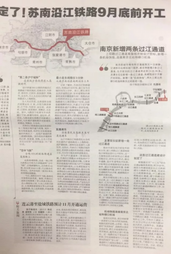 心心念念的苏南沿江铁路终于有时间表了