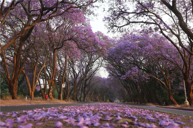 2016年10月2日,在津巴布韦首都哈拉雷,蓝花楹盛开。(新华社发,陈雅琴摄)