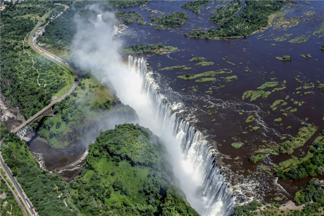 这是2014年2月17日从空中俯瞰的津巴布韦维多利亚瀑布。(新华社记者许林贵摄)