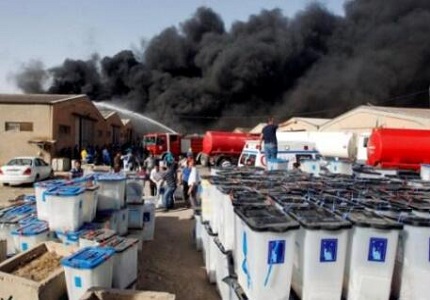 浓烟从巴格达一处票仓升起(图片来源:路透社)