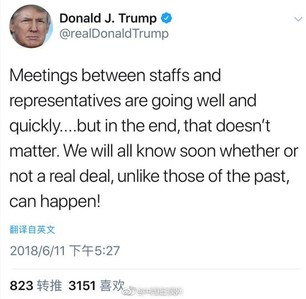 当地时间上午5点27分,美国总统特朗普在新加坡发出了今天的第一条推特。他表示双方团队的会议进展很顺利,但是这一切并不重要。“我们很快就会知道,是否会签署与过去不同的,真正的协议!”谚语“早起的鸟儿有虫吃” (The early bird catches the worm),会应验吗?