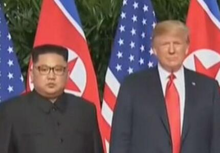 两人随后在媒体镜头前再次握手,脸上露出笑容。握手完毕后,特朗普向金正恩伸出大拇指。