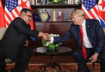 据悉,当地时间12日上午,朝鲜最高领导人金正恩与美国总统特朗普在新加坡嘉佩乐酒店举行首次会晤,双方握手致意。这是在任的朝美领导人数十年来首次会晤及握手。