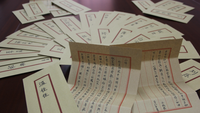 心思细腻的钱雨昱平日很珍惜与同学、老师们相处的美好记忆,在每封信中她写下了收信方有关的专属记忆,回顾了和每位同学、老师相处的点滴,根据大家的特点写出最贴切的话语。
