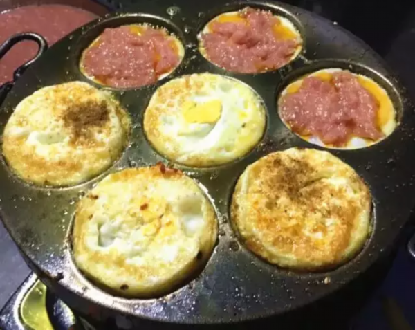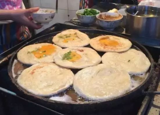 开了不少年的一家店,藏在陆家巷内,每天排队的人络绎不绝,但老板的手脚很麻利,不一会儿就能排到啦。饼都是现擀的,放在油锅上正反面煎,煎至微黄后将饼的表皮弄破一点点将整颗鸡蛋打入其中继续煎,待面皮直至金黄色了再放在炉子上炕一下,这样既去油腻也能保证饼的两面都酥脆无比。