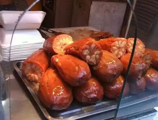 原本在菜市场旁边,但今天菜市场被拆了,这家店依然存在。现在正好是莲藕上市的季节,软软糯糯的藕里裹着满满的糯米,酱汁芳香四溢带着浓浓的桂花香,蜂蜜配在里面甜而不腻。他们家一般选用的都是九孔藕,这样糯米才会装得多。