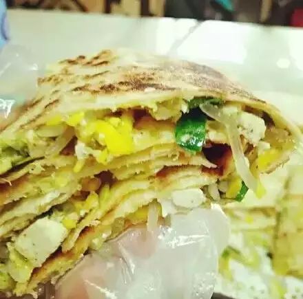 张妈家的煎饼很好吃,一份有很大。一顿正餐也完全担得起!菜料丰富得超出想象,不同于普通煎饼做点缀,更像是巨无霸春卷的吃法。什么海带、胡萝卜、粉条、土豆,经过类似于炒制的调味,加上火热不燥的辣酱,口感很丰富,外层煎饼脆韧,尤其是饼边的部分薄如纸,吃起来脆脆的hin好吃呢!