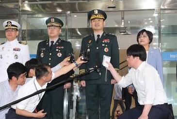 14日,韩方代表团团长金道均启程赴会前接受采访